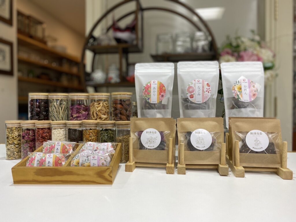 薬膳茶、薬膳菓子などの販売、温かいお茶もお愉しみいただけます。