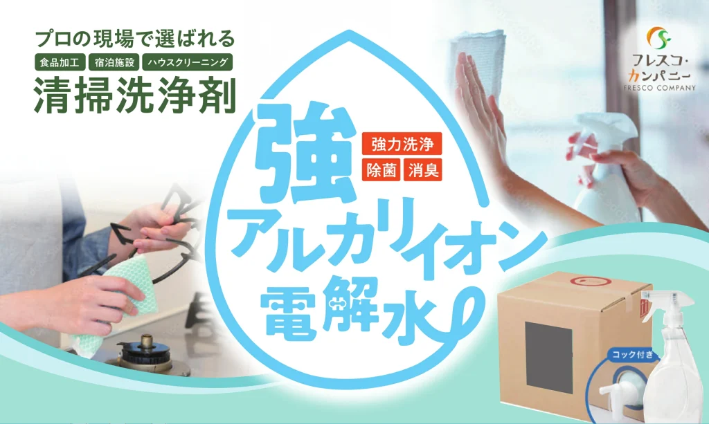 今回は年末のお掃除でお役に立つ「強アルカリイオン電解水」「次亜塩素散水」などをご紹介、販売いたします。